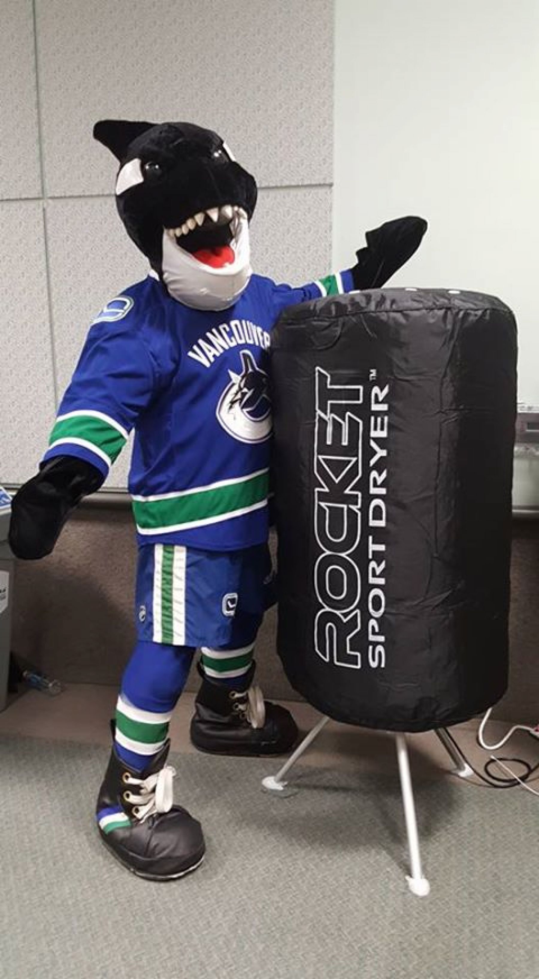 Get to know your NHL Mascots! Meet FIN @CanucksFin …the friendly Orca Whale from the Vancouver Canucks. ROCKET SPORT keeps FIN dry with his ROCKET DRYER on the road and his ROCKET Locker at Rogers Arena.